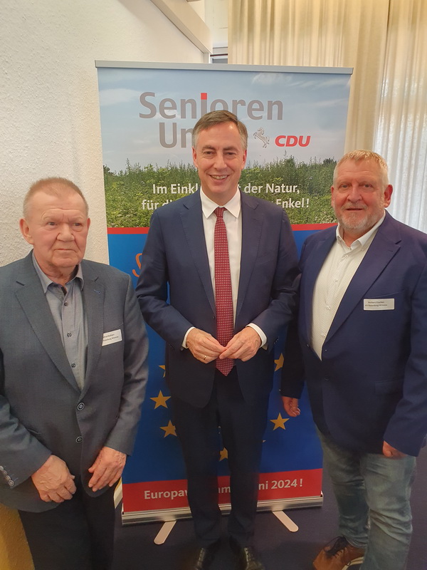 Im Rahmen der Kreisvorsitzenden-Konferenz am 29. April 2024 im Haus des Sports in Hannover hat die Senioren Union den Spitzenkandidaten der CDU in Niedersachsen zur Europawahl, David McAllister MdEP, in Hannover zum Austausch empfangen. „Die Europawahl am 9. Juni ist eine Richtungsentscheidung für unseren Kontinent. Wie wollen wir leben? Wie wollen wir künftig wirtschaften? Wie sieht das Europa von Morgen aus? Auf diese Fragen geben wir als Christliche Demokraten klare Antworten“, erklärte David McAllister. Das vereinte Europa brauche eine engere und besser abgestimmte Sicherheitspolitik, die europäischen Staaten müsste mehr Verantwortung innerhalb der NATO tragen und ihre eigenen verteidigungspolitischen Fähigkeiten ausbauen, betonte der Vorsitzende des Auswärtigen Ausschusses im Europäischen Parlament. Darüber hinaus brauche es in Brüssel einen stärkeren Fokus auf internationale Wettbewerbsfähigkeit und eine verantwortungsvolle Wirtschafts- und Handelspolitik. „Unser vereintes Europa soll auch Morgen ein Garant für Frieden, für Freiheit, für Sicherheit und für Wohlstand sein. Dafür braucht es das am 9. Juni das Engagement von Christlichen Demokraten gegen Radikale, Nationalisten und Demagogen“, so McAllister abschließend. Eine Bilanz zog zum Abschluss der Veranstaltung der Landesvorsitzende der Senioren Union Niedersachsen, Rainer Hajek: „Bei unserer heutigen Kreisvorsitzenden-Konferenz sollten die Bedeutung der Europäischen Union für Niedersachsen sowie die Europawahl im Vordergrund stehen - das ist uns gut gelungen.“ Neben David McAllister folgten auch der Landesvorsitzende der CDU in Niedersachsen, Sebastian Lechner, sowie die Landesvorsitzende der Jungen Union in Niedersachsen, Karoline Czychon der Einladung der Senioren Union zum Austausch.
